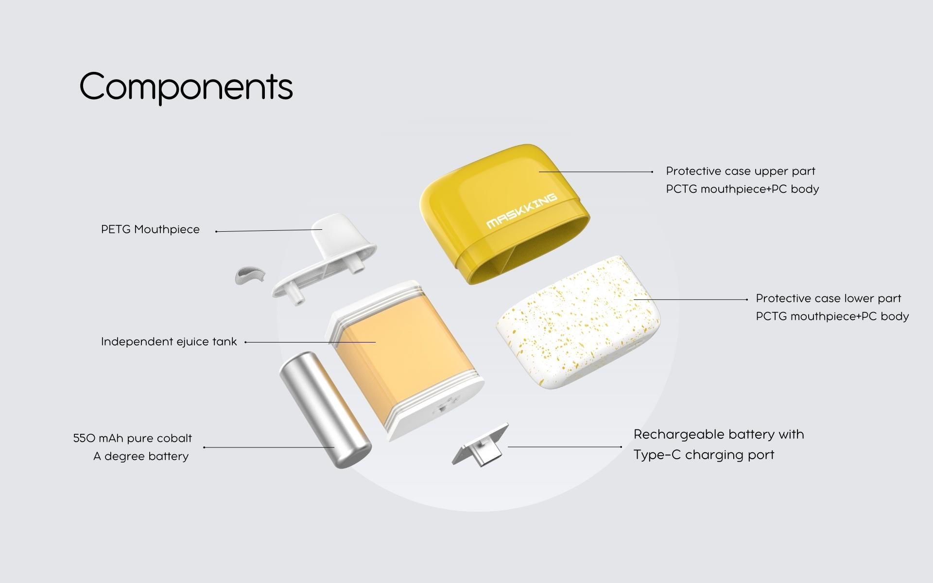 Maskking Jam Box comes equipped with a 550mAh battery, providing ample power to sustain its extensive puff capacity and ensure consistent performance throughout its lifespan. Ideal for on-the-go use, it eliminates the hassle of carrying additional e-liquid bottles or charging cables, making it a practical choice for travel or everyday vaping.