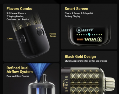 In addition to its superior performance, the Elfbar Combo 25000 also features a stylish black-gold design. This elegant and premium look not only enhances the overall vaping experience, but also makes the device a stylish accessory. The stylish design ensures that it fits comfortably in your hands and pockets, making it perfect for vaping on the go.